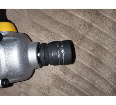 Покупал для гайковёрта. Колесные гайки откручивает. Головка не развалилась за время снятия/установки четырёх колёс. Сидит крепко, не болтается.