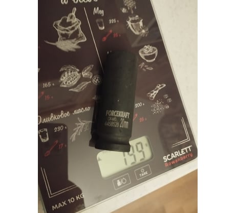 Традиционный обман. Головка не силовая, тонкостенная, меньше весит, чем в описании и головка меньшего типоразмера того же производителя, но из набора. Заявлен вес 220 граммов, реально - 198-199 г.