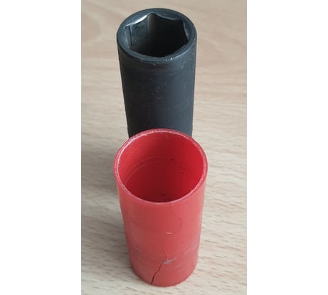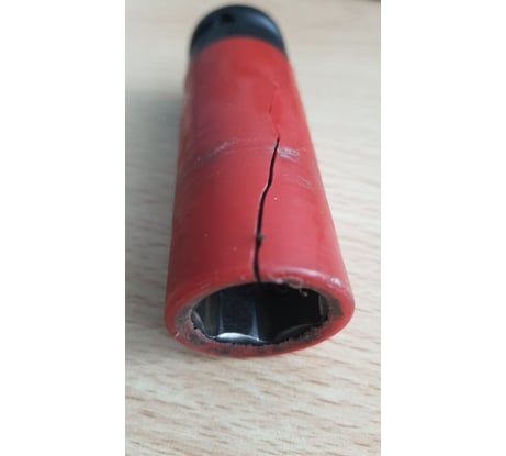 При сезонной смене колес при помощи аккумуляторного гайковерта "Интерскол" на VW Tiguan головка лопнула на 3-ем колесе. Пластик очень тонкий. Металл головки слабый.
