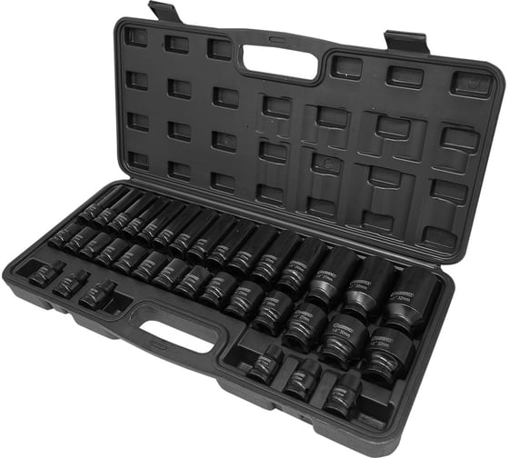 - Широкий диапазон размеров — 35 головок охватывают большинство распространённых размеров крепежа, что позволяет решать широкий спектр задач без необходимости докупать недостающие позиции.