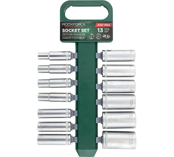 Набор торцевых глубоких головок 6-гранных с посадочным квадратом 1/2" от бренда Rockforce — это идеальный комплект для работы с крепежными элементами, который обеспечивает максимальную эффективность и комфорт. Состоящий из 13 предметов, этот набор станет незаменимым помощником как в профессиональной мастерской, так и в домашнем использовании.