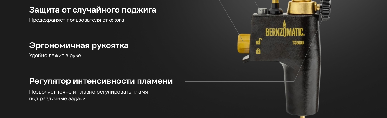 Профессиональная высокопроизводительная газовая горелкаTS 8000 на МАРР-газе с пьезоподжигом и съемным латунным соплом.