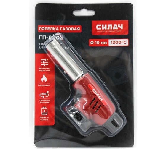 Горелка газовая СИЛАЧ ГП -9002 пьезо, с цанговым захватом, сопло 19мм, 15,5х5х6 см 025584