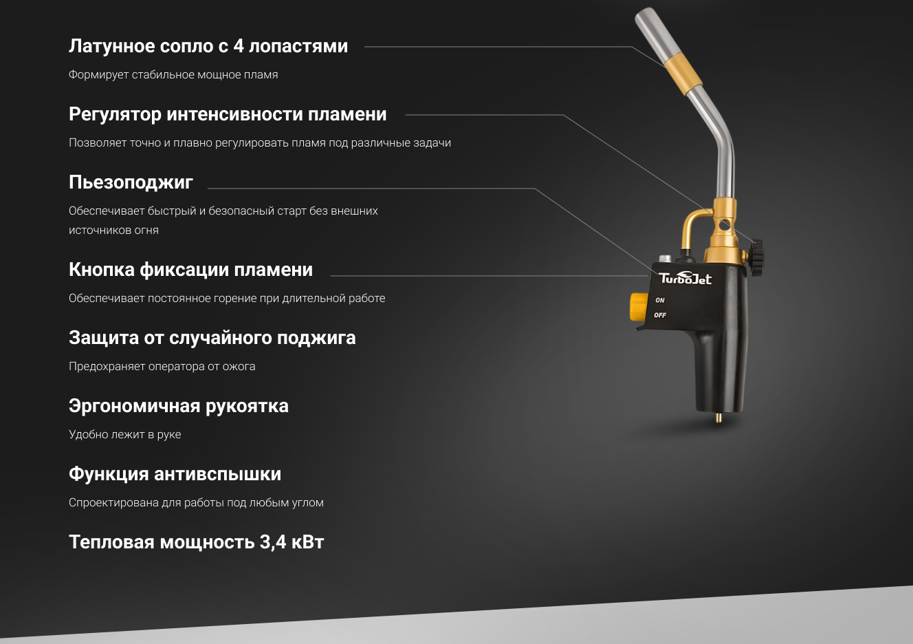 - регулятором интенсивности пламени – для точного и плавного регулирования пламени под разные задачи;