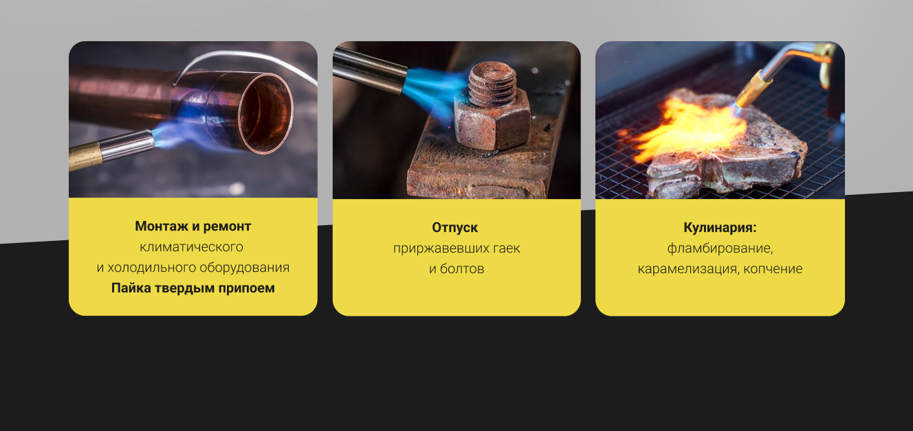 Отличный вариант для пайки и нагрева меди, латуни и алюминия в области вентиляции, кондиционирования и отопления, а так же отпуска приржавевших болтов и гаек. Широко востребована в автосервисах и шиномонтажах.