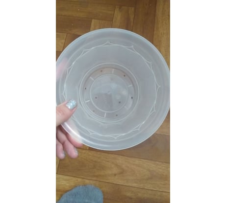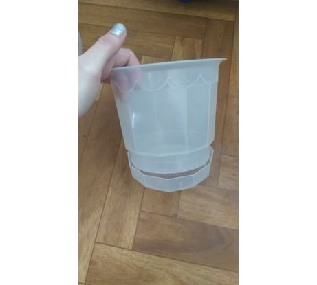 Хороший горшок, пластик качественный, есть дренажные отверстия, поддон с высокими бортиками. По поводу внешнего вида претензий нет, планирую использовать как вставку в керамическое кашпо