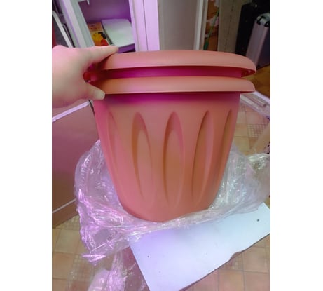 Красивый, вместительный, добротный крепкий пластик, дырки проделать внизу горшка очень легко.
