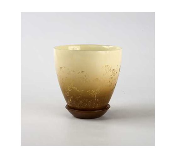 Горшок ЭЛЕТЕХ с поддоном №2, прозрачный, круглый, кремовый, матовый, коричневая структура, с золотым металликом 4840163264