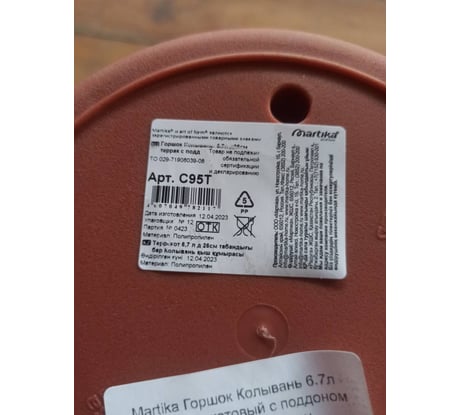 Отзывы о горшке Колывань с поддоном Martika 6.7 л, диам. 26 см, терракотовый С95Т