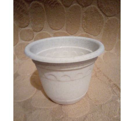 Отличный небольшой горшочек , с прикрепленным поддоном . Пластик достаточно плотный , хорошо смотрится на окне