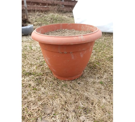 Отличный горшок, недорогой, крепкий, имитирует терракот, не воняет, используется на улице