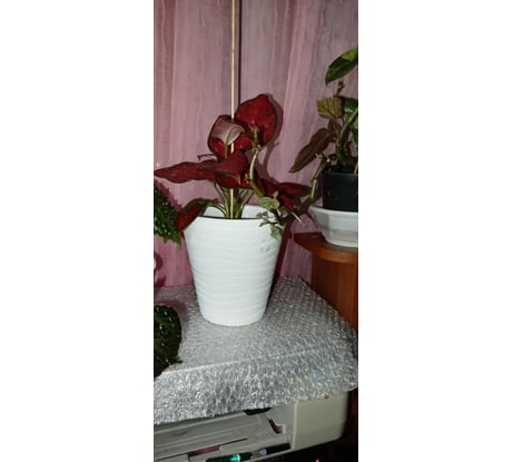 Высота кашпо – 16 см, диаметр верха –16 см, диаметр дна – 10 см. Высота внутреннего горшка без учета ножек – 14,5 см. Несколько лет пользуюсь таким же, только на 2,8 л. Пластик не треснул, не пожелтел.