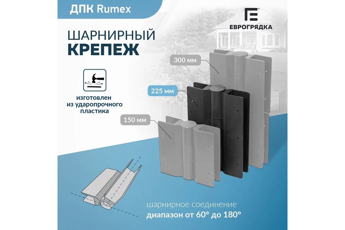Еврогрядка представляет Вашему вниманию полный комплект материалов для создания долговечной грядки из ДПК. Грядки из ДПК Rumex сделаны из первичного ПВХ пластика. Гарантия 15 лет. Срок службы более 30 лет.