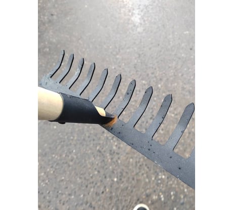 Металл хороший. Упругий, твердый, покрытие везде нанесено равномерно, нет сколов и ржавчины. Зубцы достаточно толстые, почти не гнутся. На черенке держится крепко, не шатается и не поворачивается.
