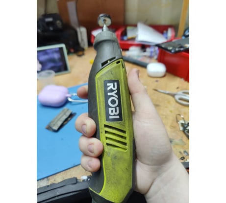 Перед покупкой внимательно прочитал огромное количество отзывов о данном гравере, по началу побоялся брать. Одновременно рассматривал подобный от производителя "Зубр", но в итоге ночь просмотров видеообзоров граверов и все таки решился взять "Ryobi" и не пожалел! До этого доводилось пользоваться знаменитым "Dremel 3000", по первым ощущениям разницы нет или же она на столько мала, что я ее не заметил! В общем, пройдусь по так называемым "минусам", которые описывают большинство комментаторов и развею большинство из них: 1. Неприятный запах при работе. Да, первый запуск гравера, запах очень неприятный, НО! Дайте вы ему немного поработать на холостых оборотах, без нагрузки, что бы все элементы притерлись! Буквально после 20-30 минут данной процедуры, запах исчез! И больше не появляется! 2. Многие писали, что плохо держит обороты. С этим можно столнуться только при неверно выбранных оборотах для определенного вида работ! В процессе работы, я максимально минимально столкнулся с падением оборотов, гравер шустренький и все делает отлично! 3. Высокая температура при долгой работе. С этим минусом я частично соглашусь. Но огромное НО, если его не насиловать, а делать все аккуратно, греться он начинает примерно часа через полтора непрерывной работы! Но если конечно прям издеваться над ним, это я имею ввиду что бы он работал под невероятной нагрузкой и допустим при максимально выставленных оборотах, его вал крутился на минимальных, то да, так он будет греться махом, но если и на вас нагрузить веса больше чем вы сможете осилить, вы соответсвенно долго не проживете) На самом деле, максимально доволен покупкой! Цена - качество! Теперь купил еще один товарищу в подарок на день рождения! Думаю будет ему незаменимым помощником в 3д-печати! А если еще докупить хорошую оснастку, то это просто великолепная вещь, которую я буду неоднократно советовать всем, кому необходима такая вещь! И кстати с ценой в 3709₽ она у меня окупилась за 1 день работы! Раньше все делал болгаркой, но сейчас как все стало легче! Одну и ту же работу выполняю минимум на день быстрее, не отрываясь от рабочего места!