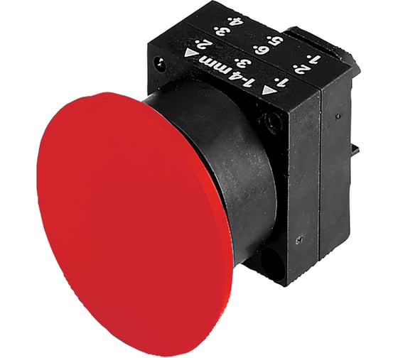 Исполнительный элемент представляет собой красную грибовидную кнопку диаметром 40 мм. Эта кнопка обладает функцией фиксации, что делает ее идеальным решением для использования в системах аварийного отключения или ситуациях, требующих немедленного воздействия. Уникальная форма обеспечивает легкость в обнаружении и использовании в критических ситуациях.