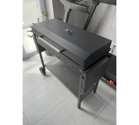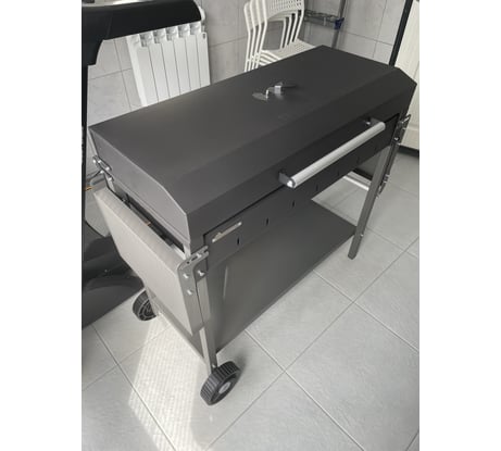Толстый металл у самого мангала. Человеческие швы (как у некоторых конкурентов). Удобно катать, блин, он тяжелый все-таки. Неожиданно большие и прочные колеса. Отличная система полок, надежно стоят, не упадут. За одну из них катать нужно, кстати.