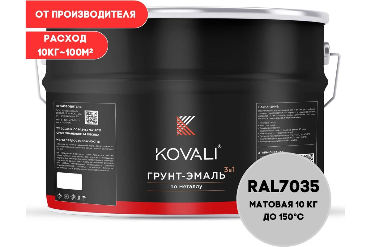 Грунт-эмаль 3 в 1 KOVALI матовая, светло-серая RAL 7035, 10 кг kov3.2.3А7035