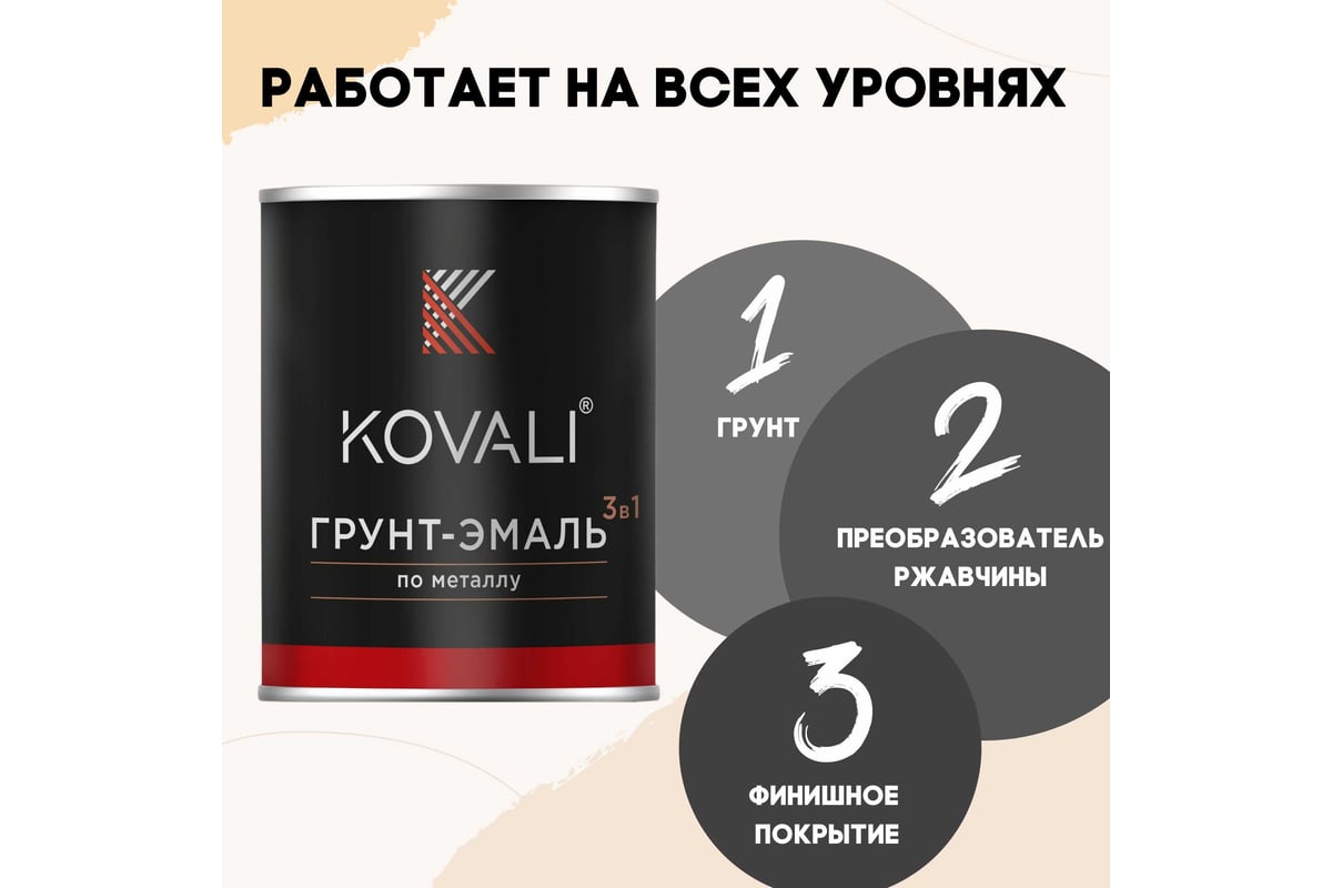 Грунт-эмаль 3 в 1 KOVALI полуглянец Сигнальная белая RAL 9003 (0,8кг) kov3.2.1.A.9003.0.8pg