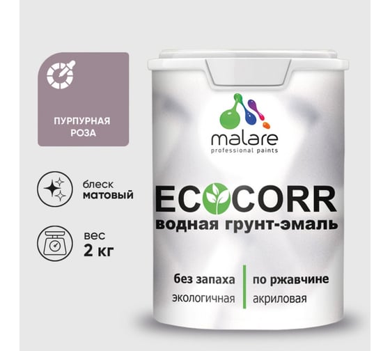 Грунт-Эмаль 3в1 EcoCorr MALARE для металлических поверхностей акриловая быстросохнущая без запаха матовая пурпурная роза 2 кг 2038119867847