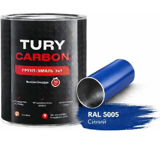 Грунт-эмаль 3в1 TURY Carbon, синий, RAL 5005, 20 кг T1-00014501