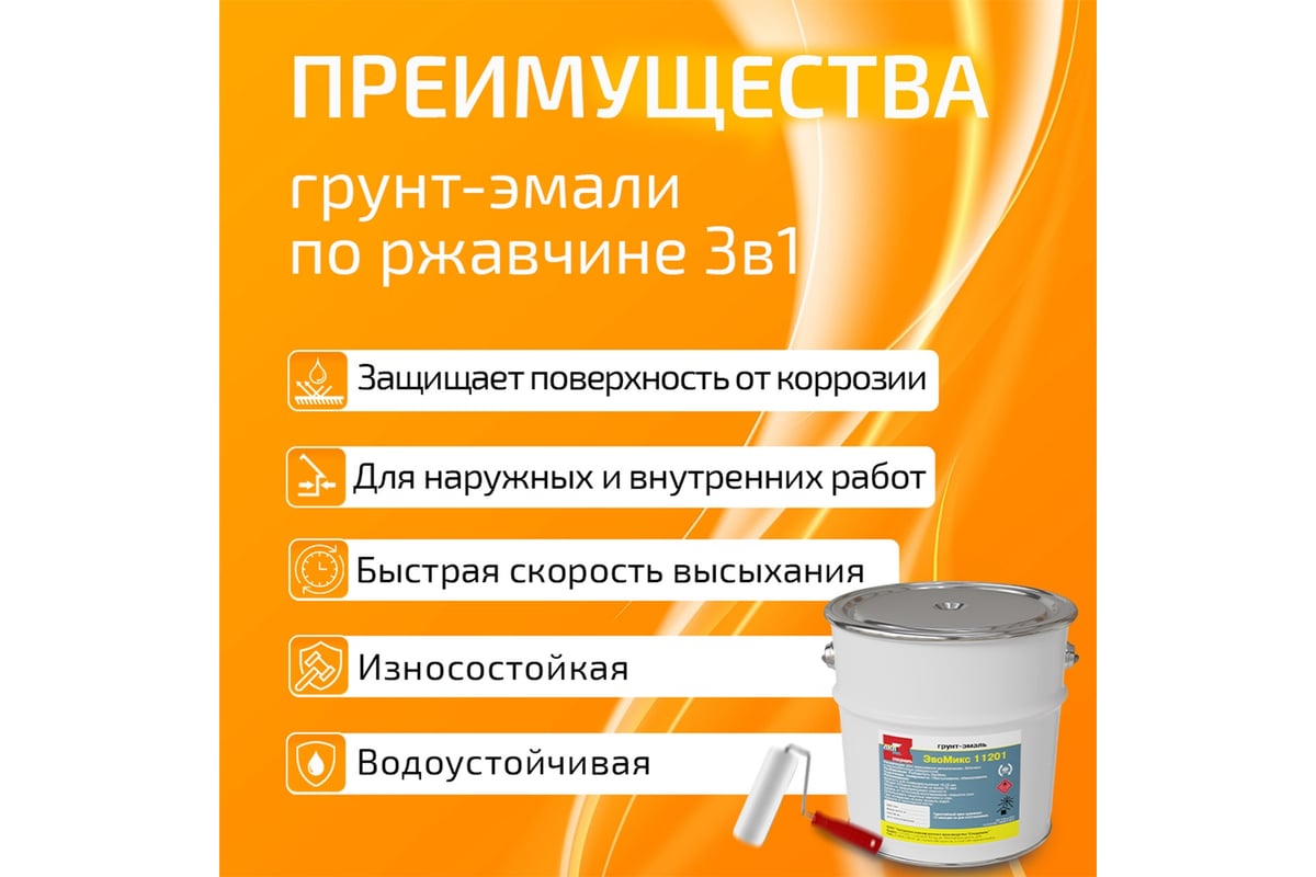 Основные преимущества грунт-эмали ЭвоМикс 11201:
