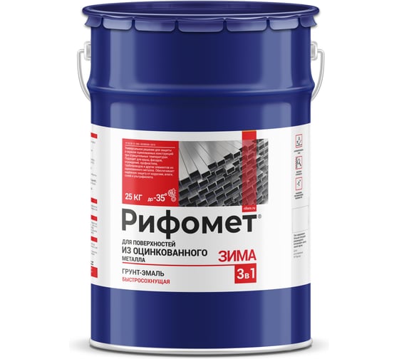 Грунт-эмаль для оцинкованного металла РИФОМЕТ Зима 25 кг, до -35 C, быстросохнущая краска по ржавчине для металла 3 в 1, матовое покрытие, синий RAL 5010 321520