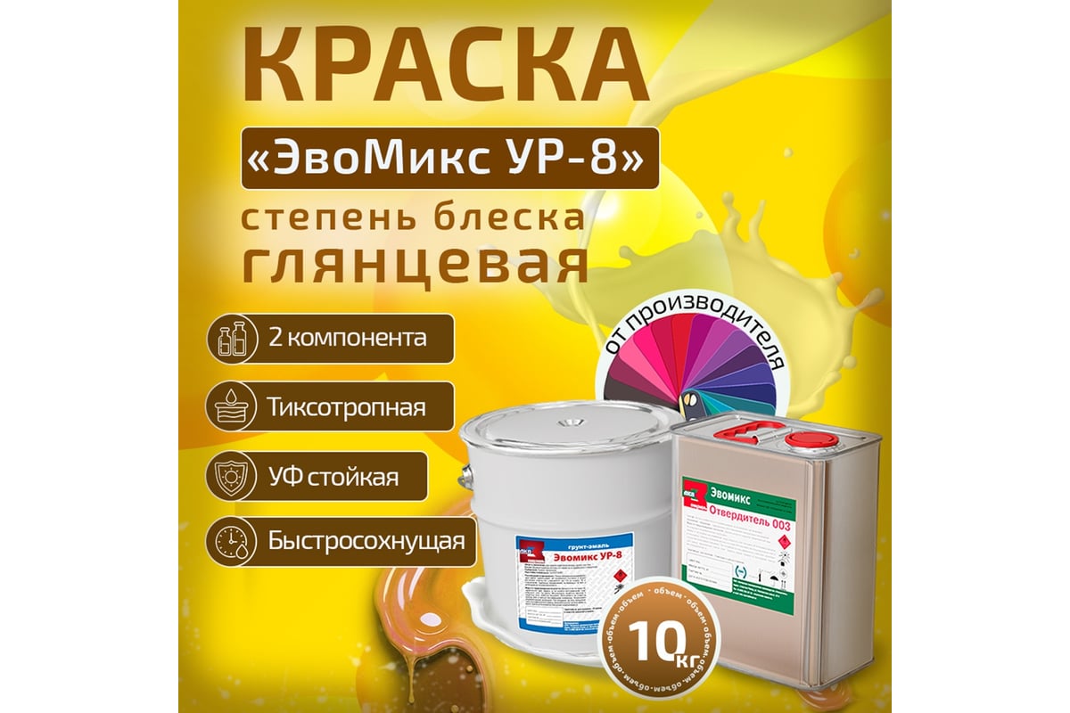Полиуретановая Двухкомпонентная глянцевая грунт-эмаль ЭвоМикс УР 8 — это отличный выбор для защиты и декорирования различных поверхностей, обеспечивая им надёжность, долговечность и эстетическую привлекательность.