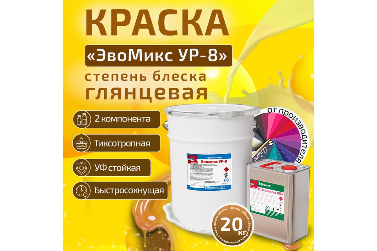Грунт-эмаль ЭвоМикс УР 8 полиуретановая, двухкомпонентная, глянцевая, 20 кг, RAL 1032 Желтый ракитник 20КПГR1032