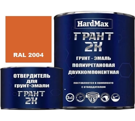 Грунт-эмаль HardMax грант 2к hard max ral 2004 ярко-оранжевый, комплект 2,19 кг 4690417106172