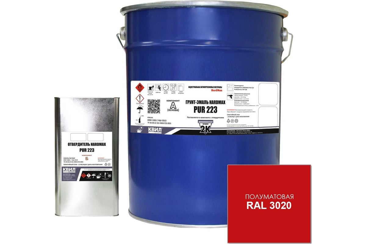 Грунт-эмаль HardMax pur 223.20 пм ral 3020 сигнально-красный, комплект 19,8 кг 4690417101863