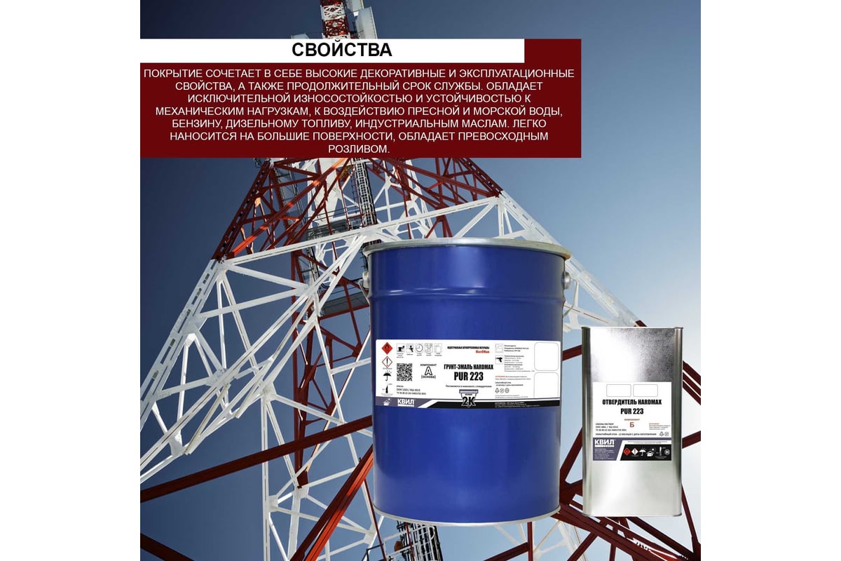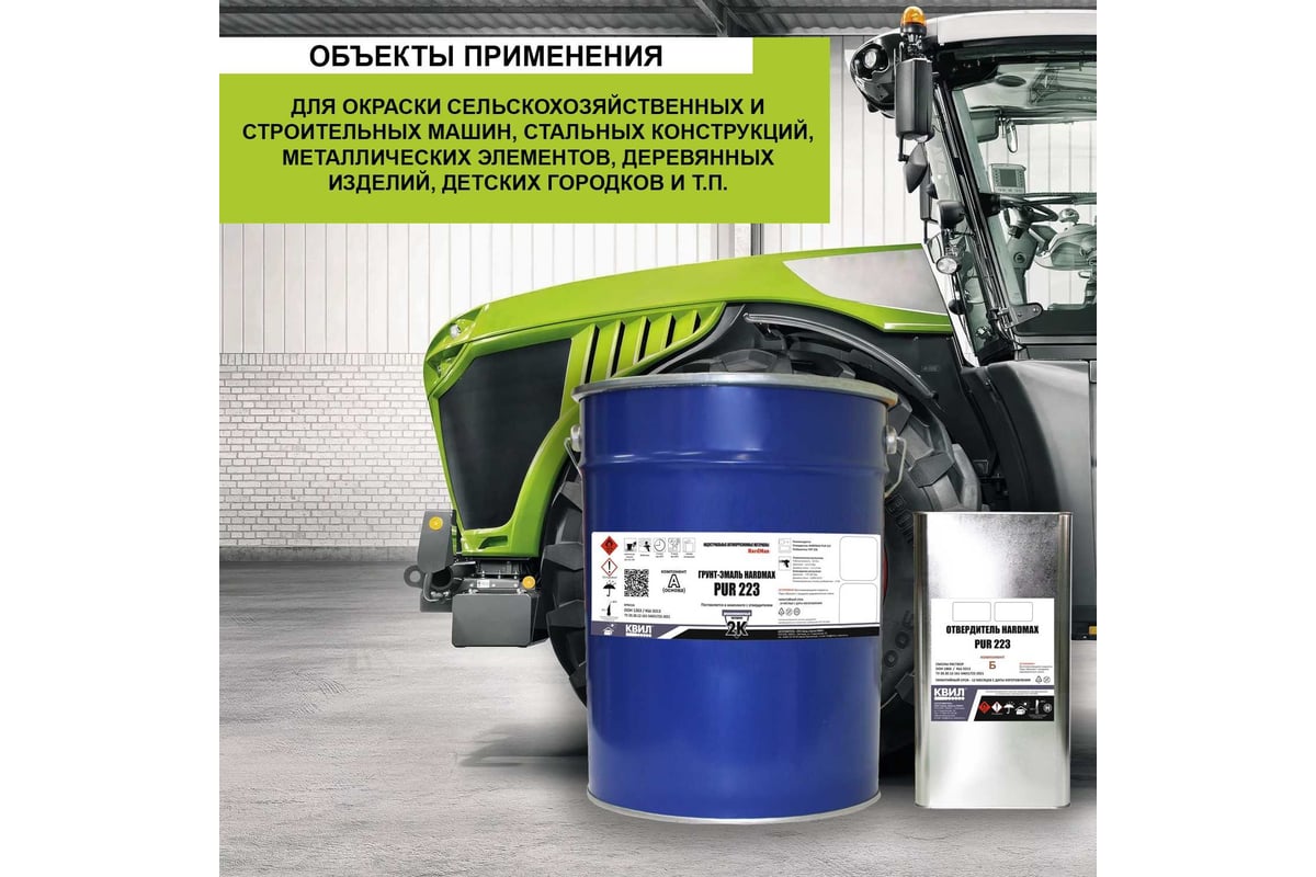 Комплект HardMax толстослойная двухкомпонентная полиуретановая грунт-эмаль с отвердителем на основе алифатического изоцианата рекомендуется для окраски сельскохозяйственных и строительных машин, стальных конструкциях, металлических элементов, деревянных изделий, детских городков и т.п.