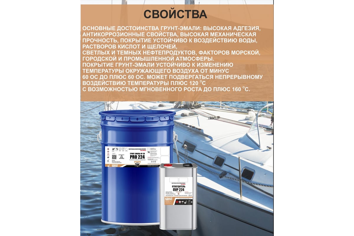 Материал предназначен для окраски надводных частей судов, мостовых конструкций, сельскохозяйственных и строи- тельных машин, стальных конструкций, металлических элементов, где требуется высокая устойчивость к механическим, химическим факторам, а также к воздействию агрессивной промышленной атмосферы.