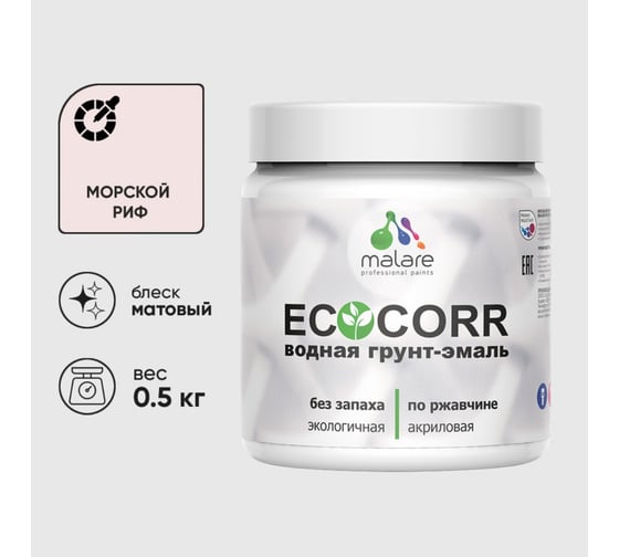 Грунт-Эмаль MALARE 3в1 EcoCorr для металлических поверхностей, акриловая быстросохнущая без запаха, матовая, морской риф, 0,5 кг 4610362816063