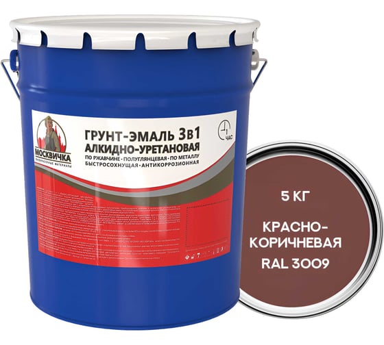 Грунт-эмаль Москвичка алкидно-уретановая, 3 в 1, красно-коричневая ral 3009, 5 кг 4620105774482