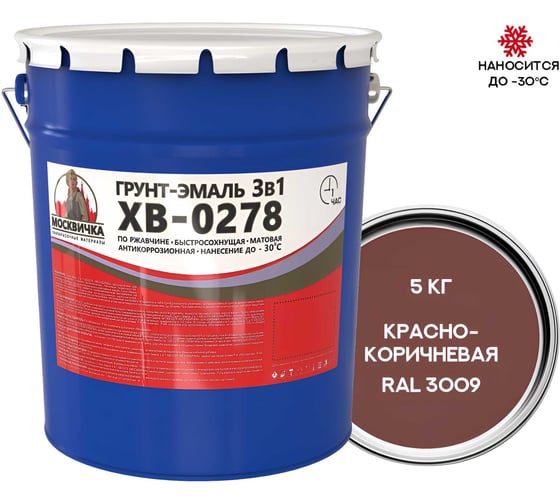Грунт-эмаль Москвичка ХВ-0278, 3 в 1, красно-коричневая ral 3009, 5 кг 4620105774406