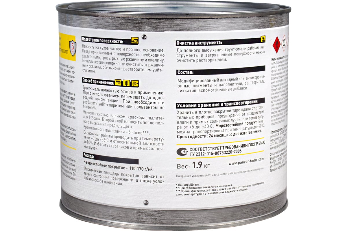 Грунт - эмаль PANZER по ржавчине 3 в 1 гладкая, красная, 1.9 кг 219851