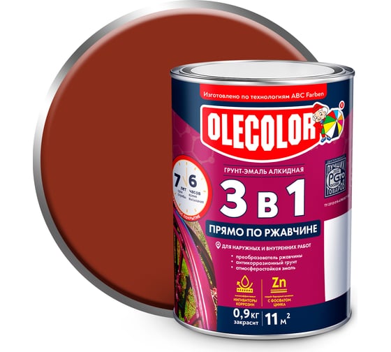 Грунт-эмаль по ржавчине OLECOLOR красно-коричневый, 0.9 кг 4300005935
