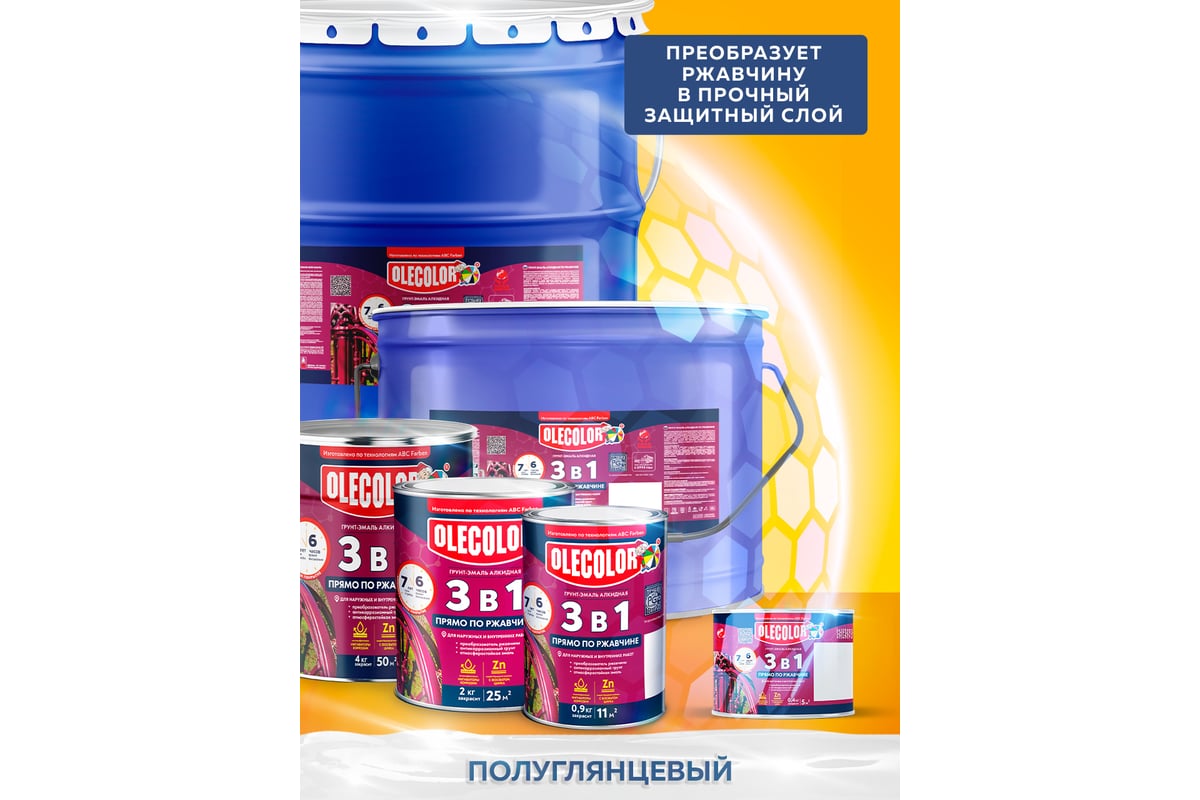 Грунт-эмаль по ржавчине OLECOLOR зеленый, 10 кг 4300005957