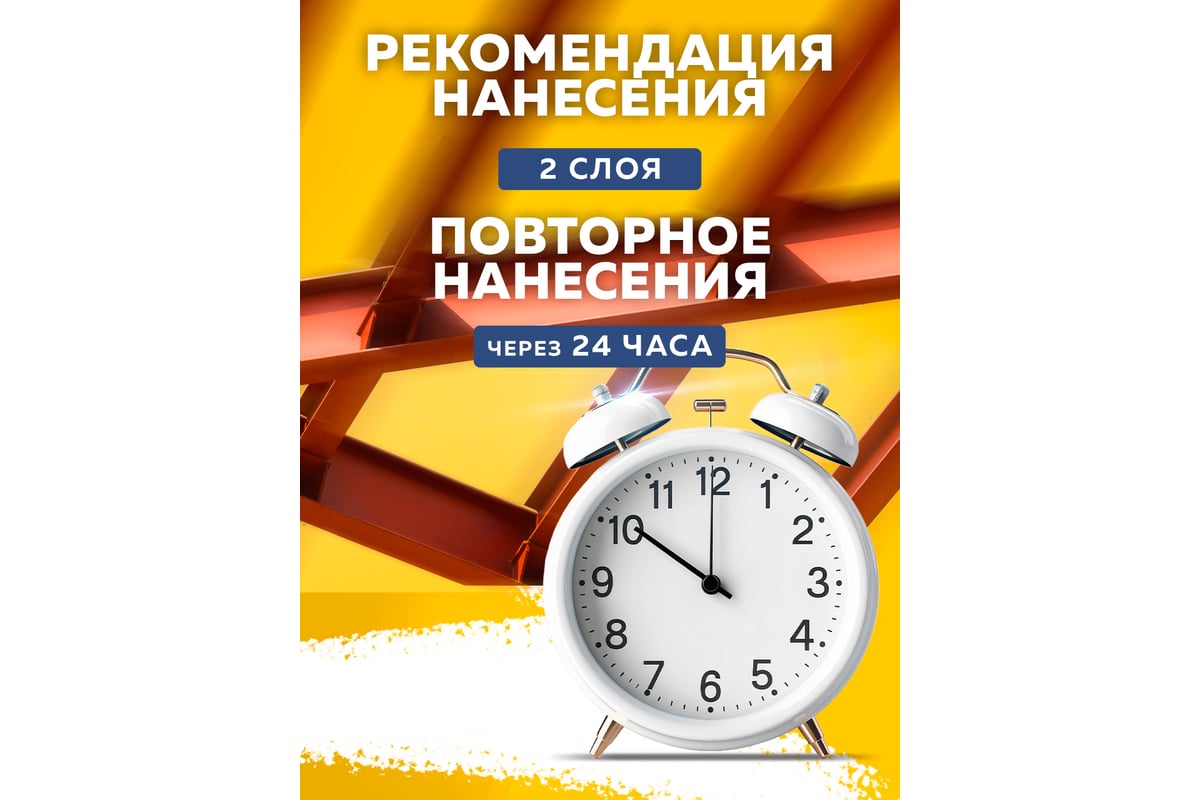 Время высыхания при температуре +20°С и нормальной влажности воздуха поверхность высыхает «до отлипа» через 6 часов. Повторное нанесение следующего слоя допускается через 24 часа. Время полного высыхания (набор твердости) - 4-5 суток.