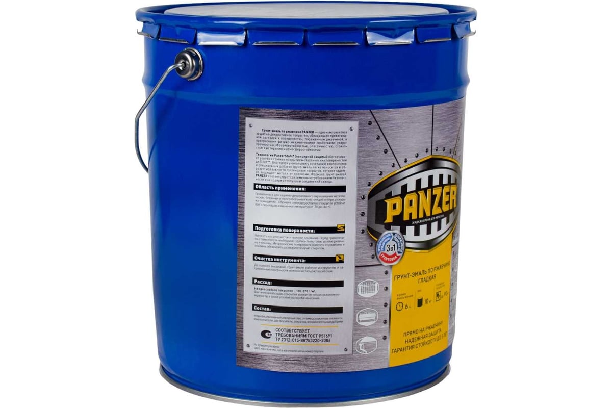 Грунт-эмаль по ржавчине PANZER гладкая, полуглянцевая, 10 кг, зеленая 259533