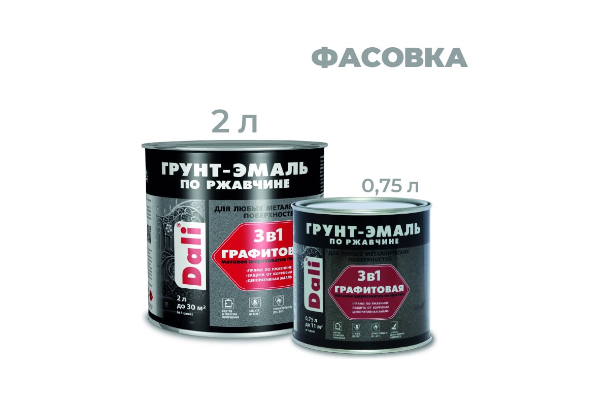 Графитовая грунт-эмаль по ржавчине DALI 3 в 1 серая, 0.75 л 221454