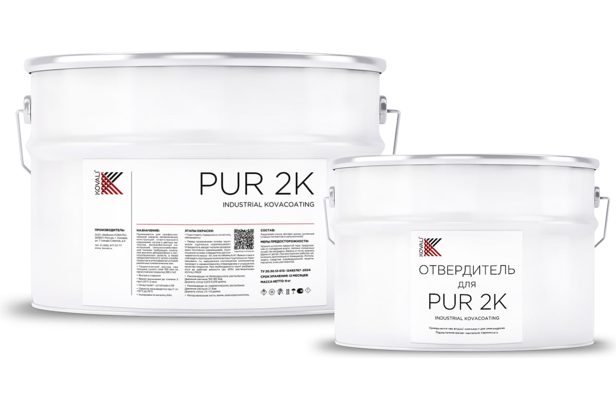 Грунт-эмаль полиуретановая KOVALI PUR 2K полуглянец Транспортная белая RAL9016 комплект 10 кг kov.p.р.5.9016.10