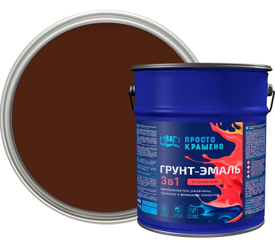 Грунт-эмаль Простокрашено! по ржавчине 3 в 1, шоколадная, 5 кг 70270