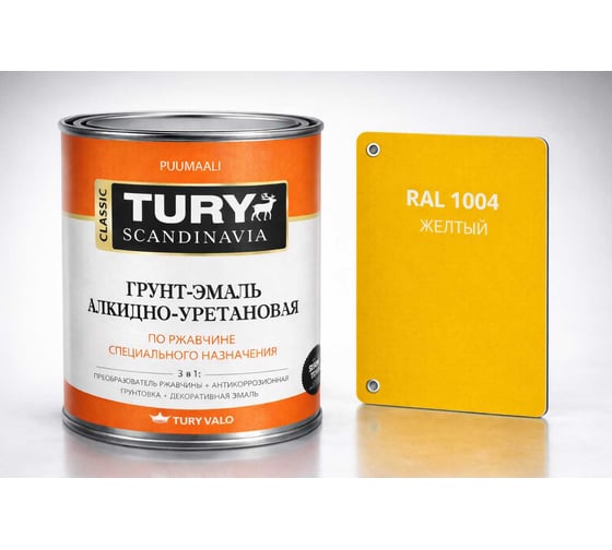 Грунт-эмаль TURY АУ по ржавчине 3 в 1, желтая (RAL 1004), 0.9 кг T1-00007172