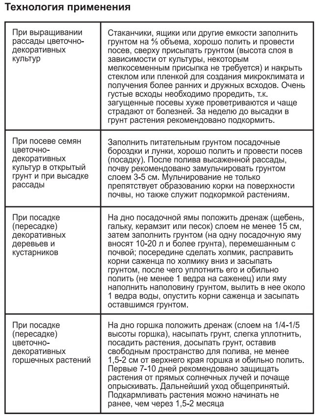 Применяется для выращивания горшечных растений, для частичной или полной замены почвы при выращивании растений в открытом грунте.
