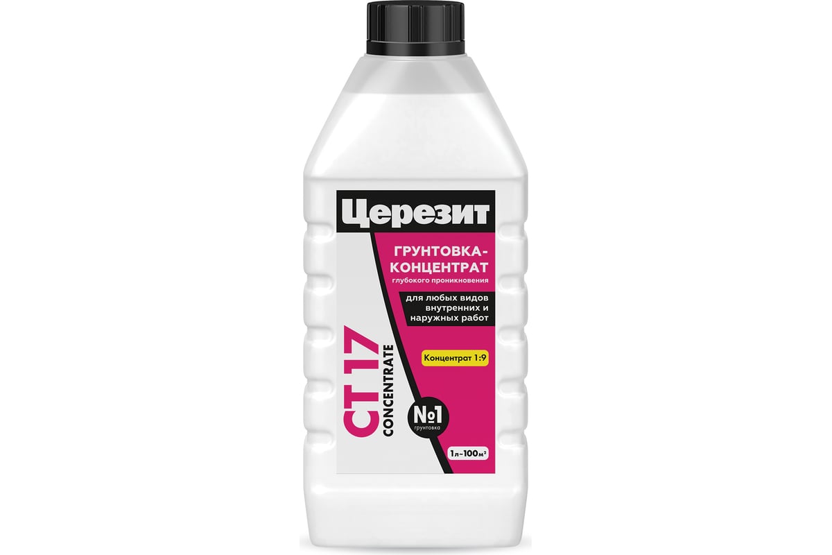 Грунтовка CT 17 Concentrate предназначена для обработки впитывающих, сильно впитывающих и непрочных оснований — цементных, известковых и гипсовых штукатурок, цементных, гипсовых и ангидритных стяжек, легкого и ячеистого бетона, кладок из керамического и силикатного кирпича, природного камня, древесностружечных и древесноволокнистых плит, гипсокартона и т.п. — перед нанесением выравнивающих штукатурных и напольных смесей, плиточных клеев, полимерных гидроизоляционных мастик, креплением систем теплоизоляции фасадов (СФТК) и т.д.
