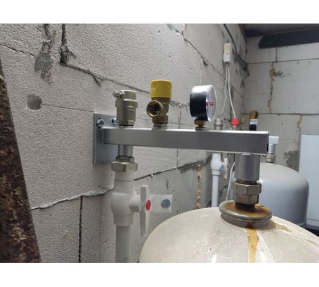 Группа безопасности расширительного бака Valtec VT.495.0.0 применяется для защиты от завоздушивания и превышения давления в автономной системе водяного отопления и горячего водоснабжения мощностью до 44 КВт и давлением до 10 бар. Состоит из полой консоли, предохранительного клапана, автоматического воздухоотводчика и манометра. Консоль оснащена патрубками с резьбой G 3/4" для мембранного бака объемом до 50 л и присоединения к системе. Воздухоотводчик предназначен для отвода воздуха и газов. Манометр служит для индикации давления.