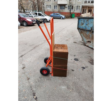 Хорошая крепкая телега. В магазине когда выкатили хотел отказаться, показалось слишком здорова, но была прям очень нужна срочно, решил взять. В машину седан еле запихнул.В итоге перекатал на ней за день с 9 этажа до контейнера в соседнем дворе 3 советских шкафа, диван и пару тумбочек. В лифт девятиэтажки входит прямо в притирочку между дверей. Колея подходит под пандусы для колясок. В целом себя оправдала.