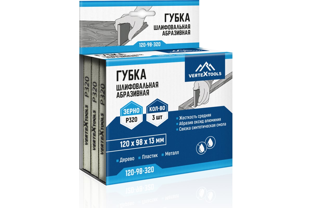 Губка абразивная шлифовальная vertextools 120х98х13мм, Р320, 3шт 120-98-320
